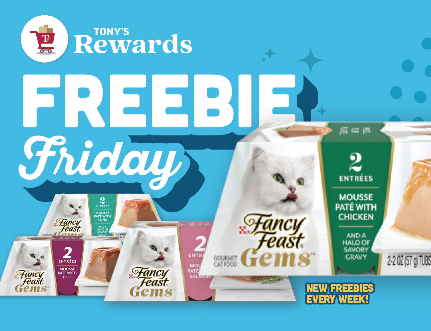 GET 1 FREE 4 oz FANCY FEAST GEMS MOUSSE PATÉ when you clip your digital coupon and enter your rewards number at checkout. You can now access this offer in your Tony’s Rewards App!