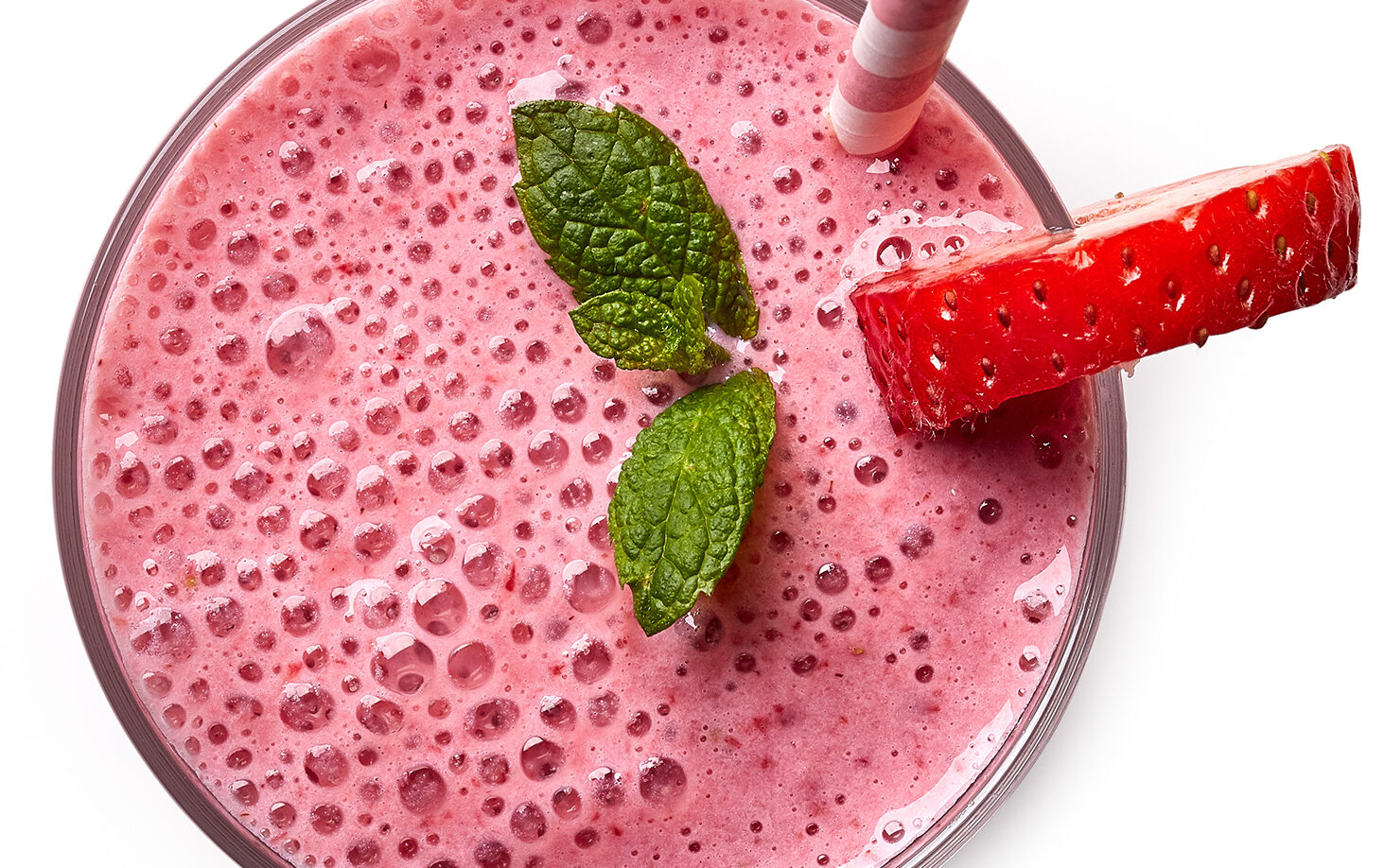 - Place the milk, berries and sugar in a blender; cover and process until smooth. Add ice cubes; cover and process until smooth. Divide mixture between 2 serving bowls. Add toppings as desired.