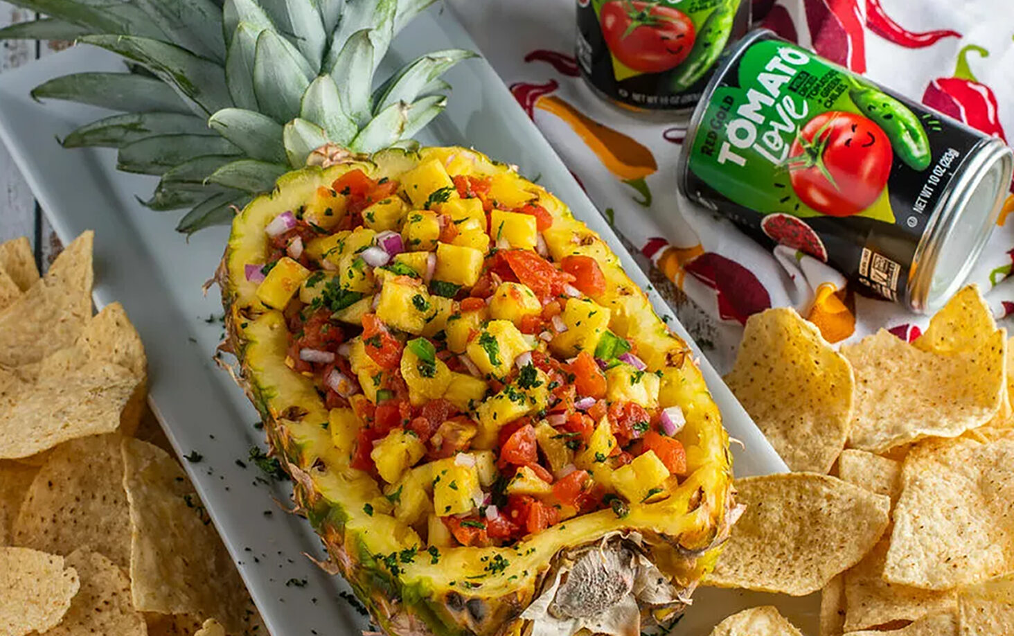 - In medium bowl, mix pineapple, tomatoes + green chilies, red onions, and jalapeños.