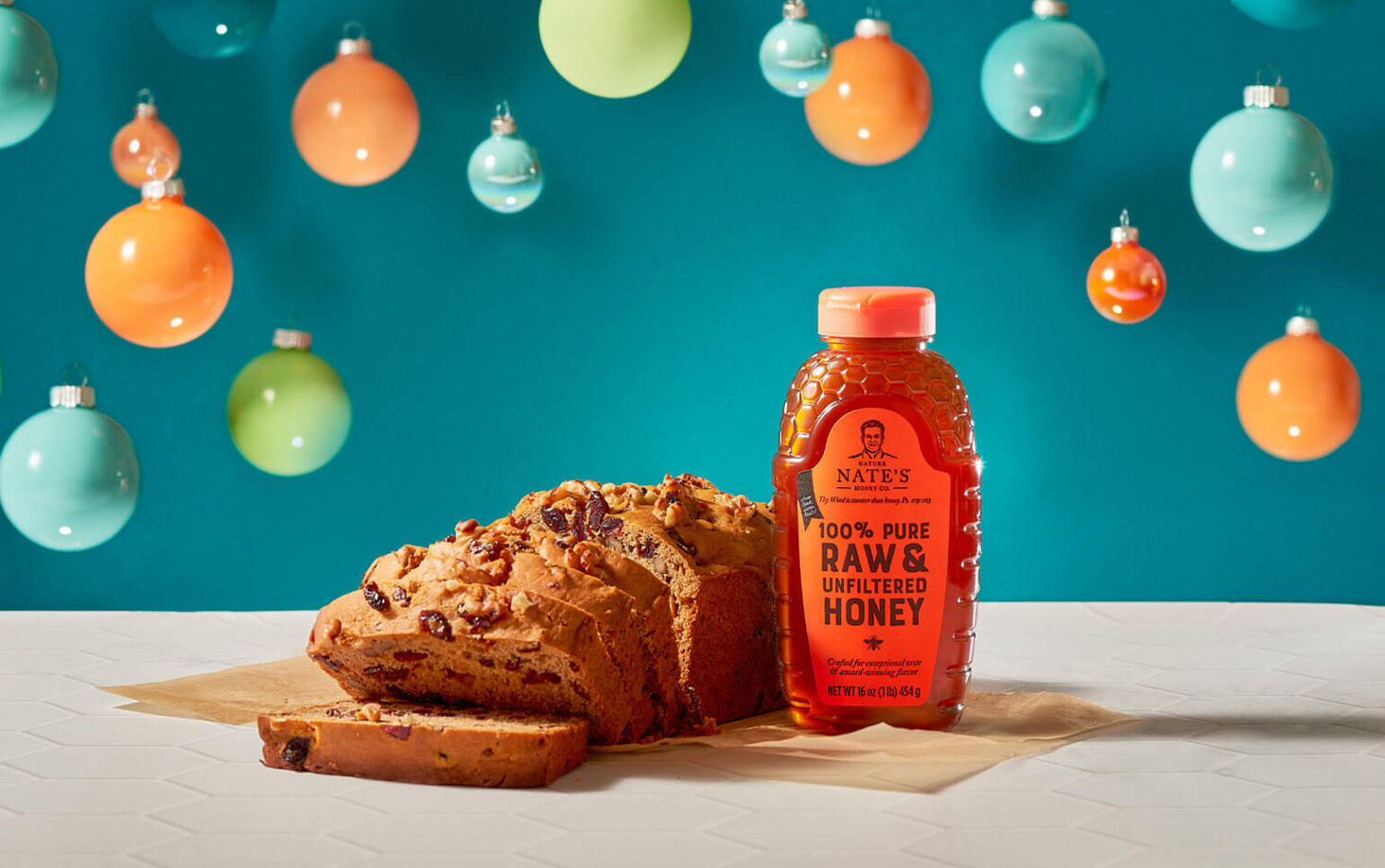 - Preheat oven to 350℉. Grease loaf pan with nonstick spray. In a large bowl, whip the butter with a fork until smooth and slightly fluffy. Stir in the honey until smooth. Add the egg, orange zest and orange juice, and mix again until smooth.