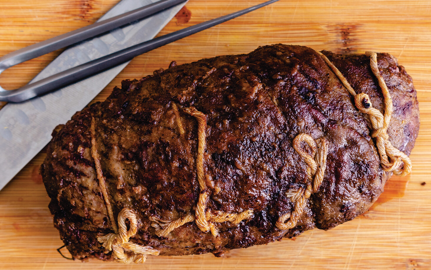 - Carefully roll the steak away from you (the grain should run width-wise), tightening as you go until it is rolled into a cylinder. Let it rest with its seam-side down.