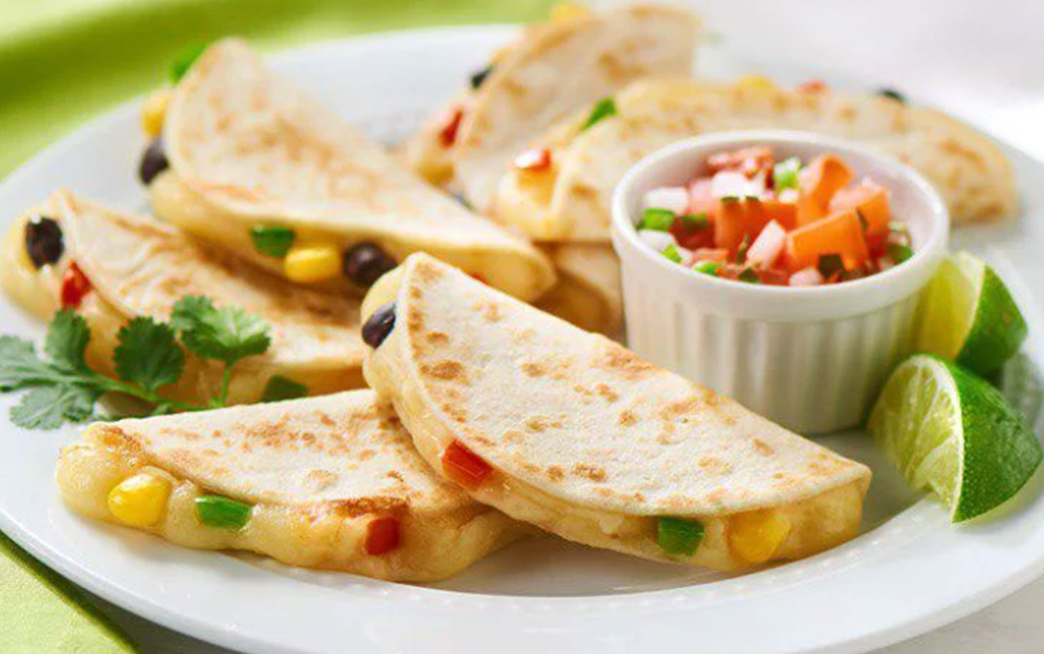 - Heat mini tortillas for 10 seconds on one side, flip tortillas and add 2 Tbsp. of cheese and 1 Tbsp. veggie mixture into each tortilla. Fold in half. Cook for about 2 minutes or until lightly golden brown. Flip occasionally with spatula so they don’t burn. Repeat with remaining ingredients. Serve with your favorite salsa and enjoy!